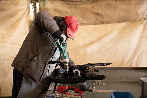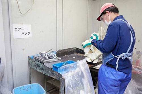 電動工具を使用してナビゲーターやシートの解体作業を行い、解体後は仕分けを行います。