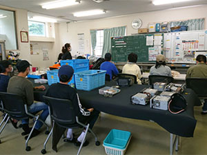 「内職実践」「解体の仕事」「事務の仕事」「A型事業所就労体験」など、実際の現場で必要な“手先をつかったジョブトレーニング”を中心に行っています。